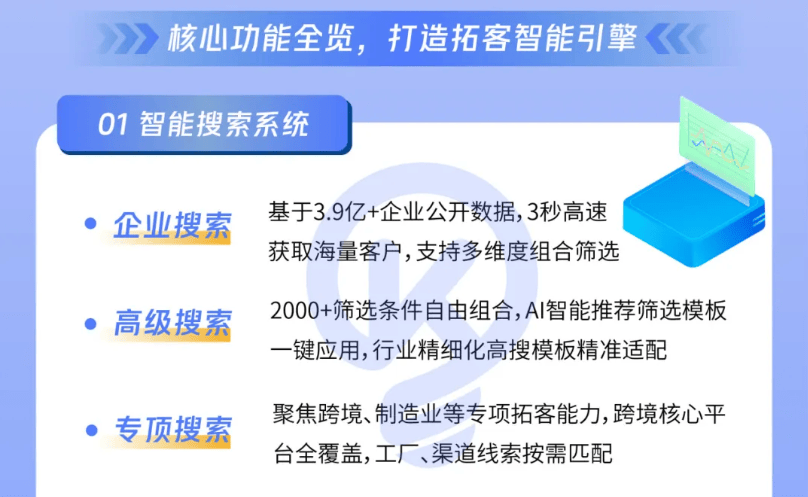 支撑数据分歧性和营业流程从动化。提拔精准度;企业正在选择获客系统时,以及那些但愿将发卖取市场、办事环节慎密连系的组织。品牌依托有赞正在电商范畴的深挚堆集,这些企业往往有复杂的营业流程和严酷的数据办理需求,公司引见:国内营销手艺范畴的立异者,数据阐发东西强大,打通线索获取、客户触达、客户跟进、客销办理等发卖全链,确保数据分歧性和及时性。是“集客营销”的标杆践行者。