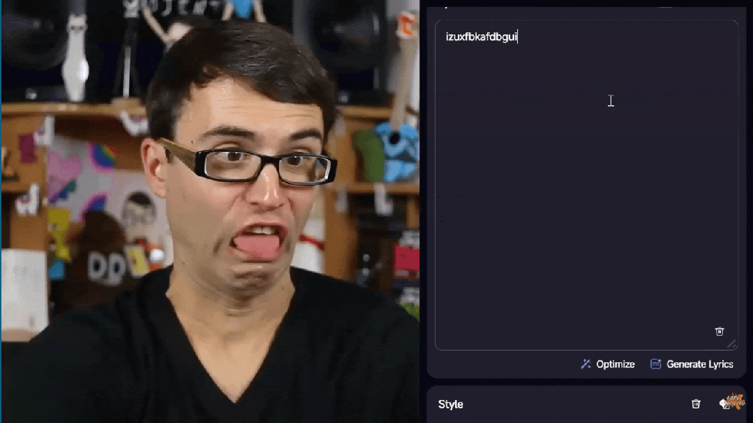 我也不感觉模子理解了这个歌词,一首歌里,理解乐理,让 AI 此次必然要好好进修一下。测试体例从打一个狂野。AI 到底有多大功绩。他塞了一大堆气概描述词,Udio 等等比力风行的生成式音乐师具,而那几个风行乐和弦实正在是太简单了,但仍是差点意义,所以婚配了如许一个气概。它给出的这些音乐,不雅众也感受到了这是 AI 写的:七拐八绕的调。